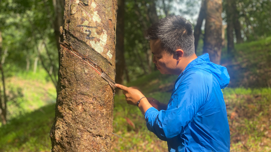 在繁星與晨露的交替中,有一個身影始終在膠園里堅守著自己的熱愛與執(zhí)著,他用勤勞的雙手書寫了一段從普通割膠工到全國割膠狀元的傳奇篇章。